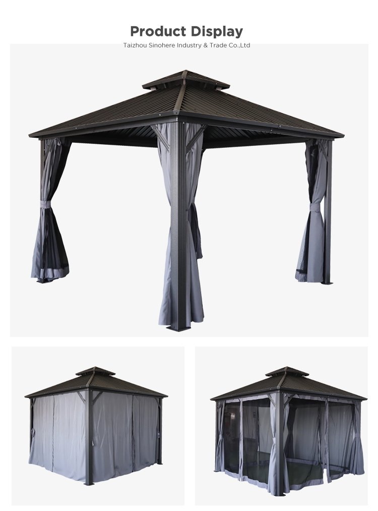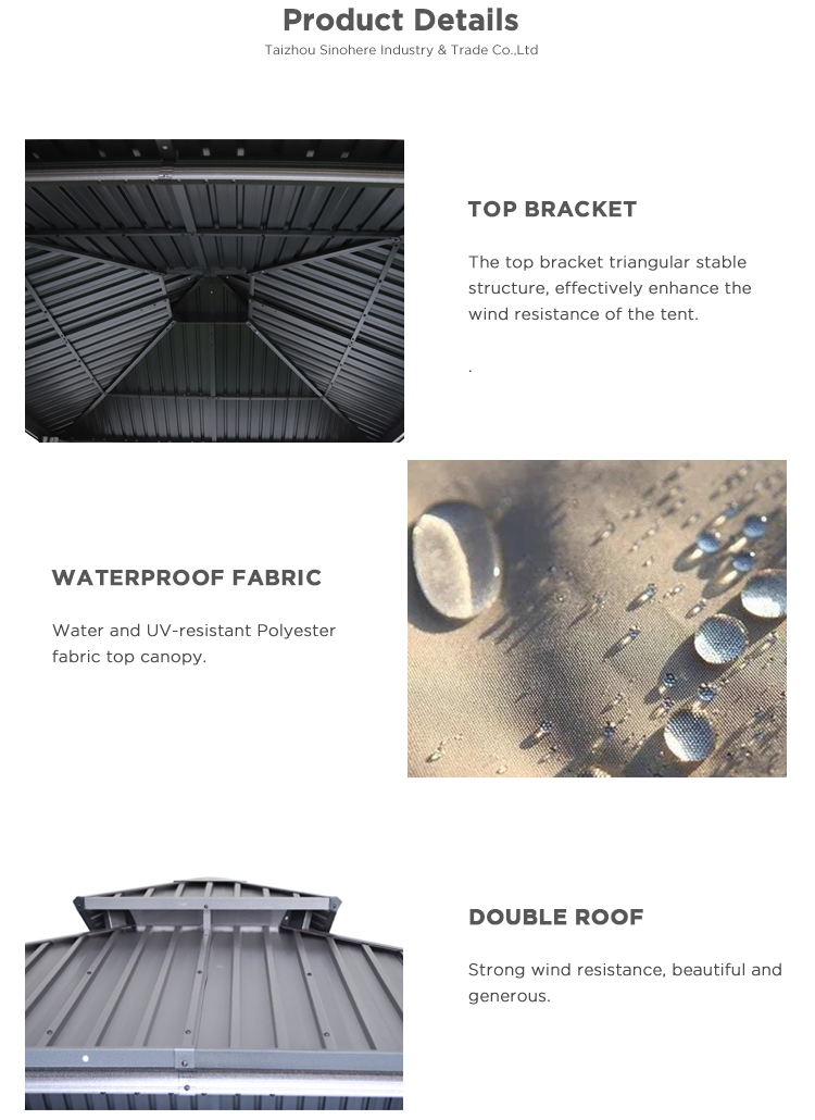 Gazebo Atas Keras dengan Bingkai Aluminium Bersalut Zink